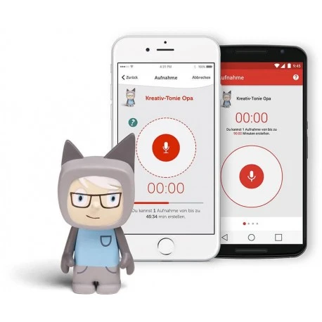 Leer-Tonies können mit Inhalten verknüpft werden, die man selbst aufnimmt. 120 Minuten warten darauf, kreativ gefüllt zu werden. Zum Beispiel mit einer selbst vorgelesenen Geschichte. Oder mit einem selbst gesungenen Gutenachtlied von unterwegs, wenn Mama auf Geschäftsreise ist. Für das und noch viel mehr gibt es die Tonie Smartphone-App..